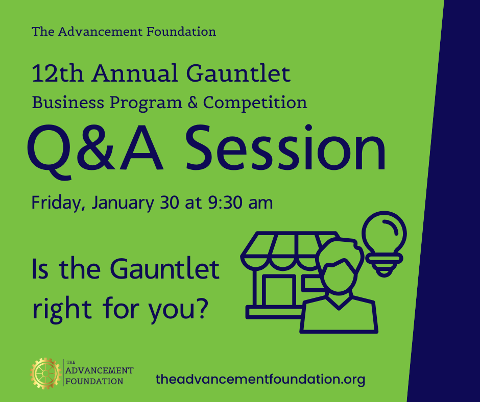 These networking events bring together entrepreneurs, mentors, and community partners for connection that leads to action, not just conversation. Each gathering features a live challenge session where a local entrepreneur shares a real business issue and the group collaborates on ideas, resources, and next steps. It’s also a low-pressure way to learn more about The Advancement Foundation programs, including The Quest and The Gauntlet.